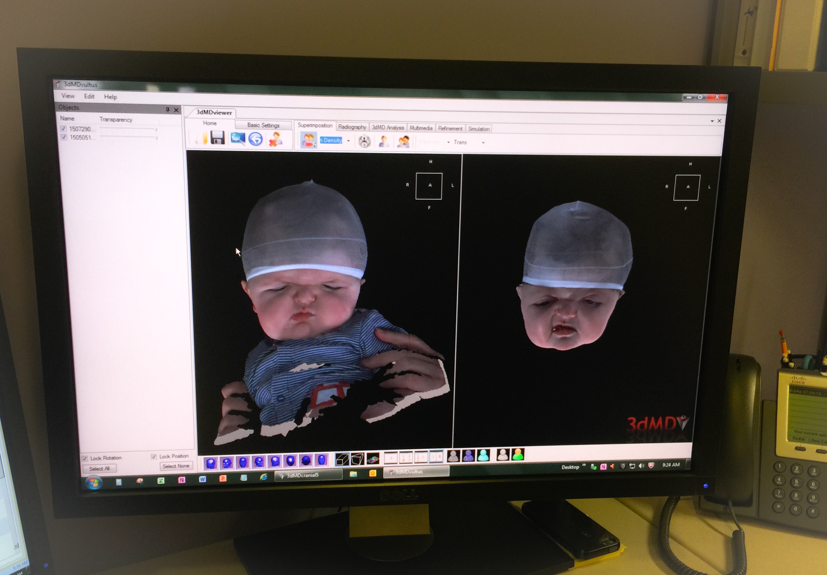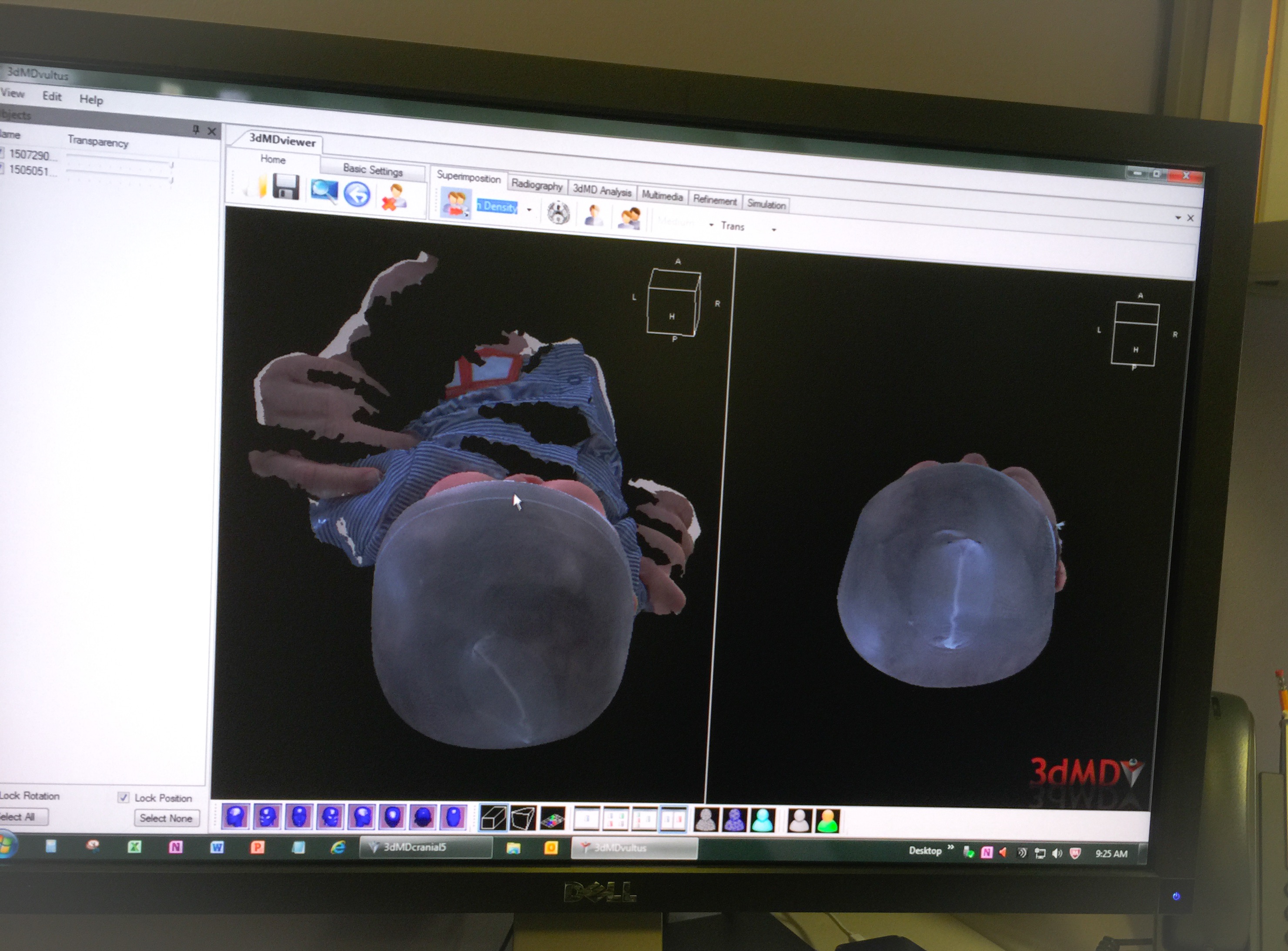 The Craniofacial department has a camera that takes a 3D picture. These next two pictures show a comparison of Isaac’s head from the beginning of May, before his last surgery. The pictures on the right are from May and the pictures on the left are from a few weeks ago. You can really tell a difference in the shape of his head.